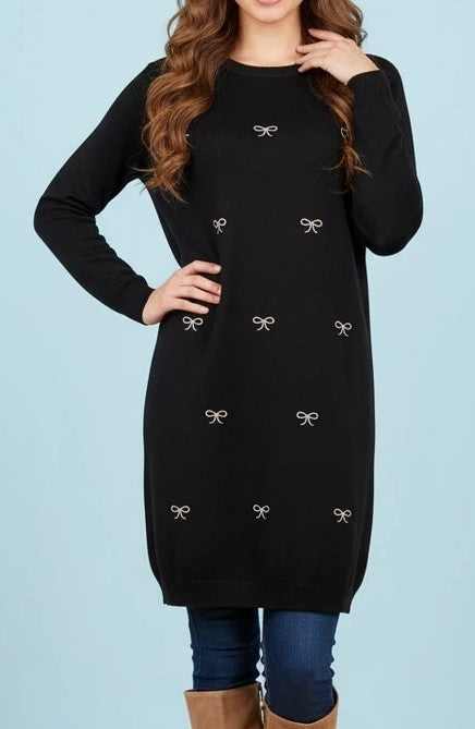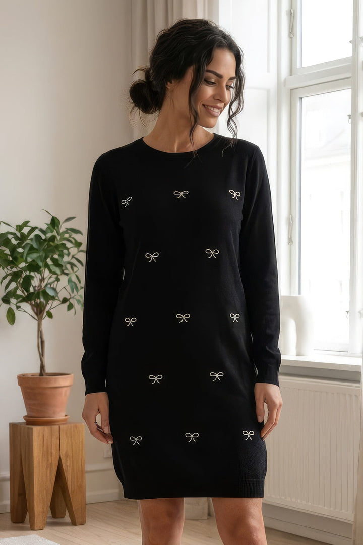 Strikkjole med sløjfer - Sort